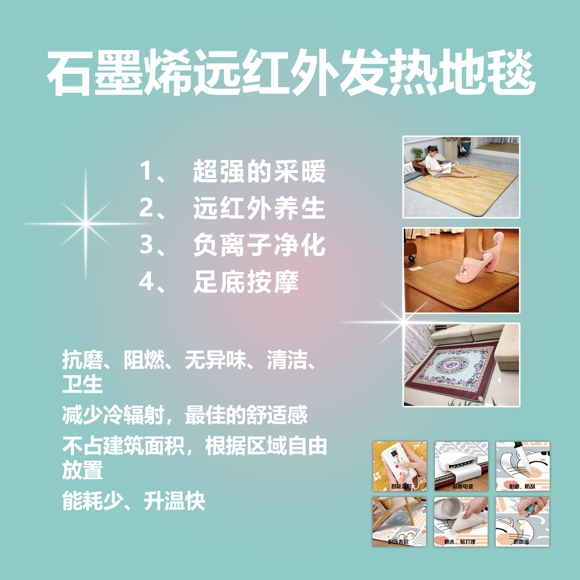 石墨烯是当今最新发现的二维纳米结构新材料,电阻率只有10-6 Ω·cm。通过特殊的制备工艺,石墨烯片层间形成均匀联通的导电网络。在发热过程,除了释放光能(远红外光波),稳定的二维结构使其没有化学能和其他能量的损失,电热转化率特别高。石墨烯的导热系数高达5300W/mK,能将产生的热量快速释放到外围空间中。在电子的作用下,石墨烯电热浆料中碳原子之间产生分子运动并发生剧烈的摩擦和撞击,表面温度迅速升高,3-5分钟即可达到设计温度。我们利用石墨烯优良的制热导热特性,制造出优质的石墨烯发热浆料,应用制造石墨烯墙暖、地暖等产品,满足环保、健康供暖要求。