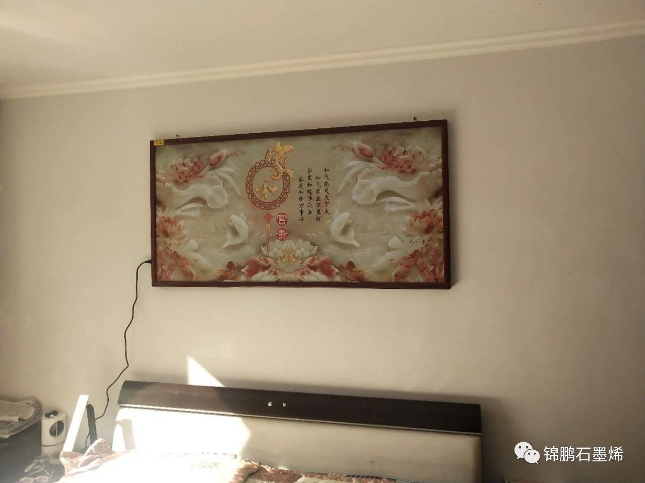 新一代“石墨烯采暖壁画”,是内蒙古锦鹏石墨烯科技有限公司科技研发团队最新研发的新一代专利产品,是高新技术与艺术的完美结合。10月10日,家住呼和浩特统战小区的统战部斯院长住宅中安装了许多石墨烯采暖壁画,在给室内带来温暖的同时,美丽的画面也感染每一个人。