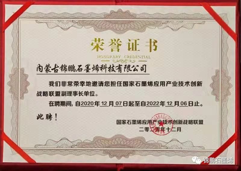 喜报!内蒙古锦鹏石墨烯科技有限公司正式成为国家石墨烯应用产业技术创新战略联盟副理事长单位
